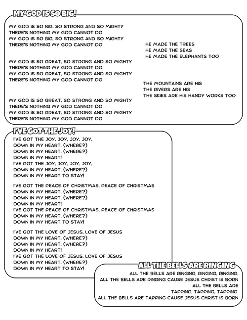 Scroll to the Bottom of this page for the Preschool songs